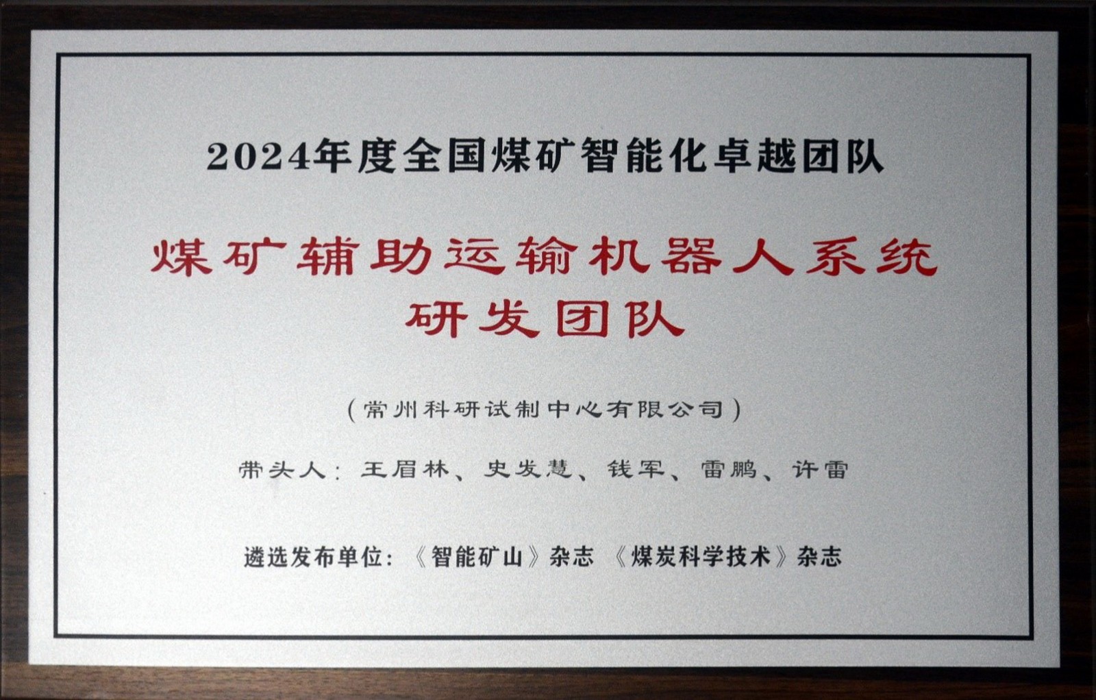 常州科試榮獲2024年度全國煤礦智能化卓越團隊